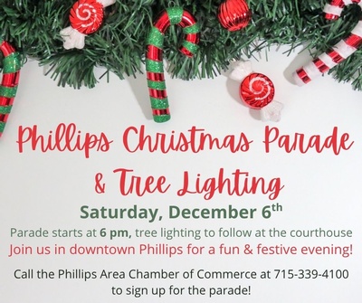 Christmas Parade & Tree Lighting Parade goes down Highway 13 Tree Lighting on downtown court house Lawn after the Parade Images Gallery Image × Set a Reminder Enter your email address below to receive a reminder message. Email address Select the amount of Days before the event -- Select Days Before Event -- 1 Day 2 Days 3 Days 1 Week Captcha Validation Please complete the Captcha Submit Date and Time Saturday Dec 6, 2025 6:00 PM - 7:00 PM CST Location Downtown Phillips, WI Set a Reminder Enter your email address below to receive a reminder message. Email address Select the amount of Days before the event -- Select Days Before Event -- 1 Day 2 Days 3 Days 1 Week Captcha Validation Please complete the Captcha Submit Share × Print Email Add to Calendar Facebook Twitter LinkedIn Tell a Friend × Select Calendar Type × Google Yahoo iCal (Outlook, Apple, or other)
