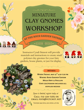 Instructor Cyndi Sinnott will provide materials and instructions to create small polymer clay gnomes for your fairy gardens, house plants, or just for display.